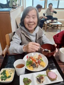 食事では、毎月のイベント料理で、お正月、ひな祭り、敬老の日、夏祭り、クリスマスなどなど、多数のイベントに力を入れて取り組んでおります。誕生日ではケーキ等を用意させていただき、記念撮影をしております。