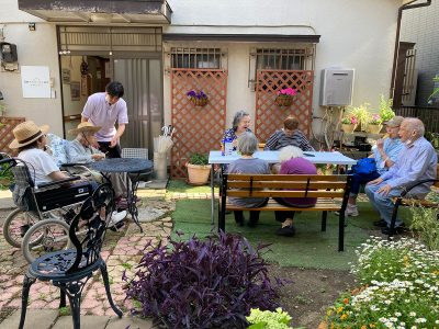 庭一面のフラワーガーデンが癒される古民家デイサービス
